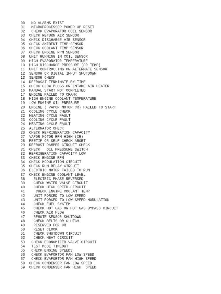 Engine stopped reason unknown code 84 84. Thermo king alarm codes north america this is a listing of all current truck trailer cr das and dsr alarm codes. 01 microprocessor power up reset. I have a thermo sb200 is giving me the codes 63 and 84 i clear them out and it keeps going off please help answered by a verified technician.